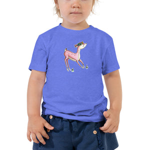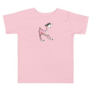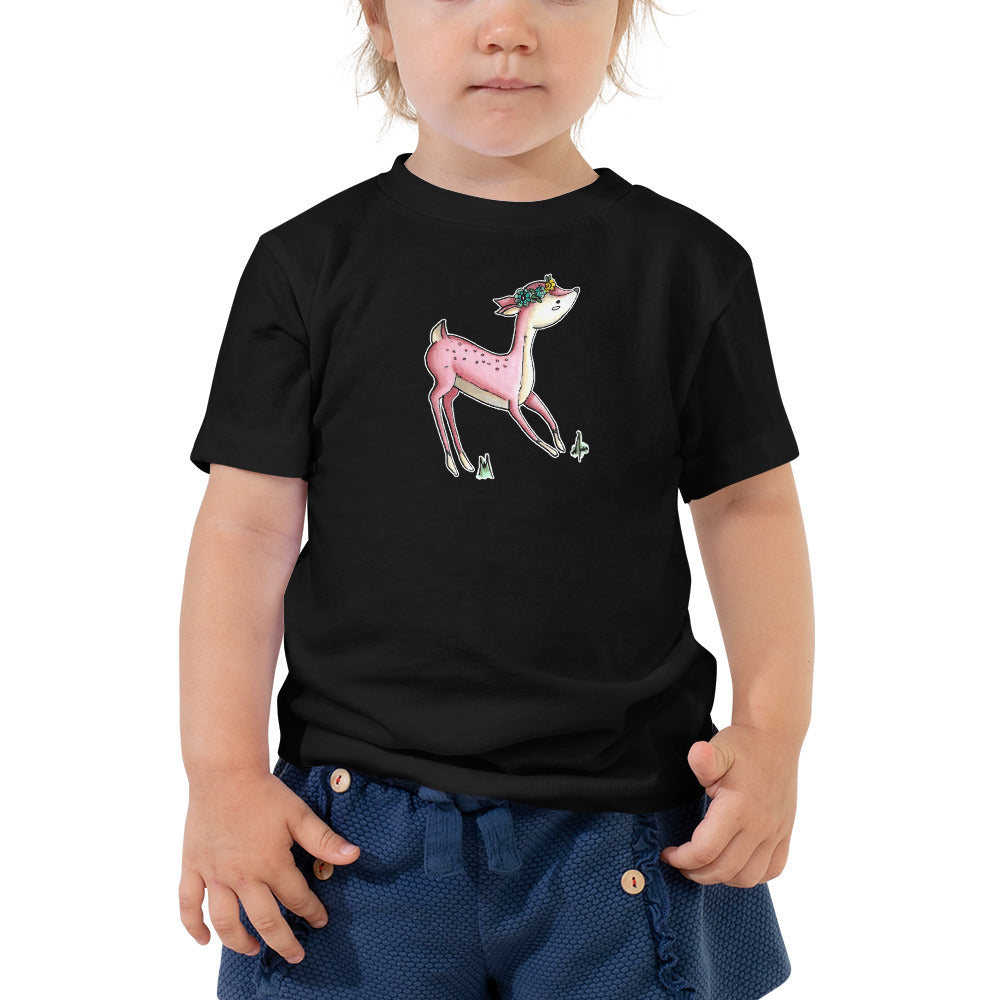 Featuring Crystal the deer. Let your toddler do their thing while feeling super comfy and looking extra stylish in this short-sleeve jersey t-shirt from 100% cotton with a unique print. The tee is soft, durable, and bound to become the staple of your toddlers wardrobe.
